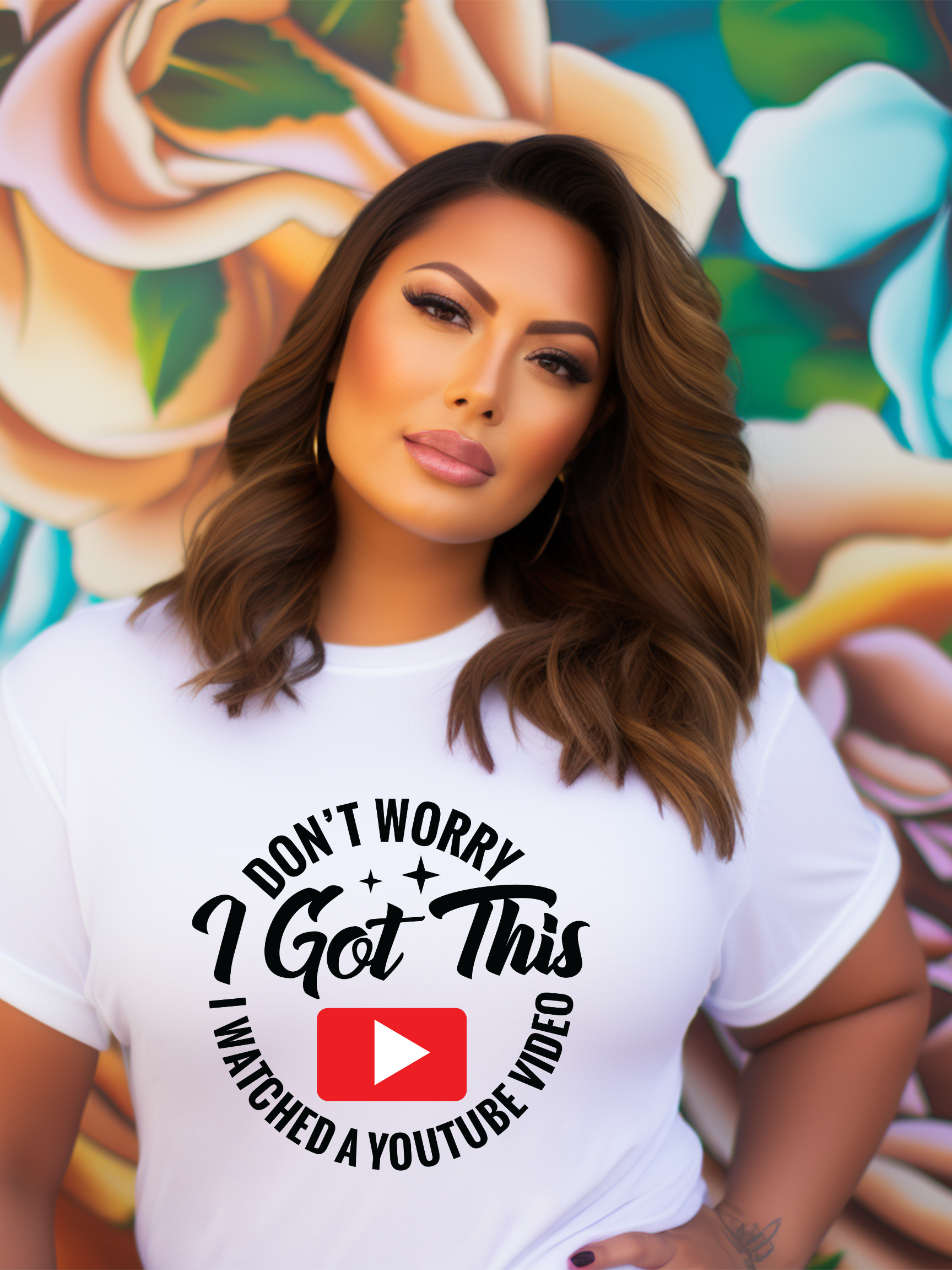 "A playful tee for the DIY enthusiast in all of us. Featuring the phrase 'Don't worry, I got this. I watched a YouTube Video,' this shirt is perfect for anyone who’s ever learned a new skill online (and maybe winged it a little). Great for casual wear, laughs, and showing off your confident problem-solving spirit."