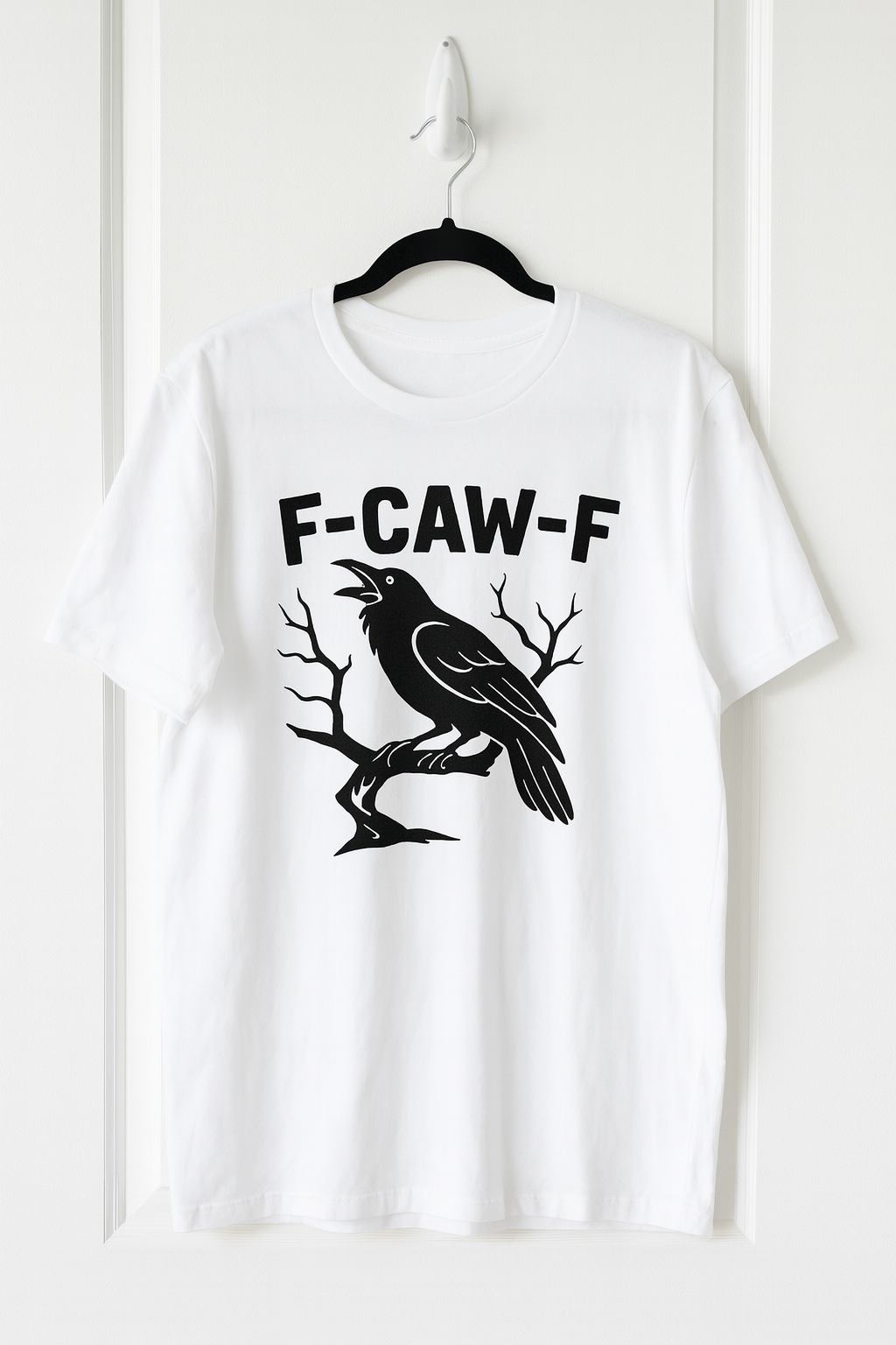 Unleash your dark humor with this T-shirt featuring a bold black raven perched on a branch. With the playful “F-CAW-F” slogan, this tee is perfect for anyone who loves clever wordplay, crows, or just making a statement.